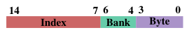 如果采用这个优化手段,其他相关优化也能用。至少对于AMD处理器来说,它把L1数据缓存分成多个独立的Bank。L1数据缓存一个时钟周期能收到两个字,前提是两个字位于不同于的Bank或者位于同一个Bank且索引一样。如图6.6所示,Bank的地址被编码到虚拟地址的几个低比特位。如果一起使用的变量也被存放在一起,那么它们位于不同的Bank或者同Bank也同索引的概率较高。